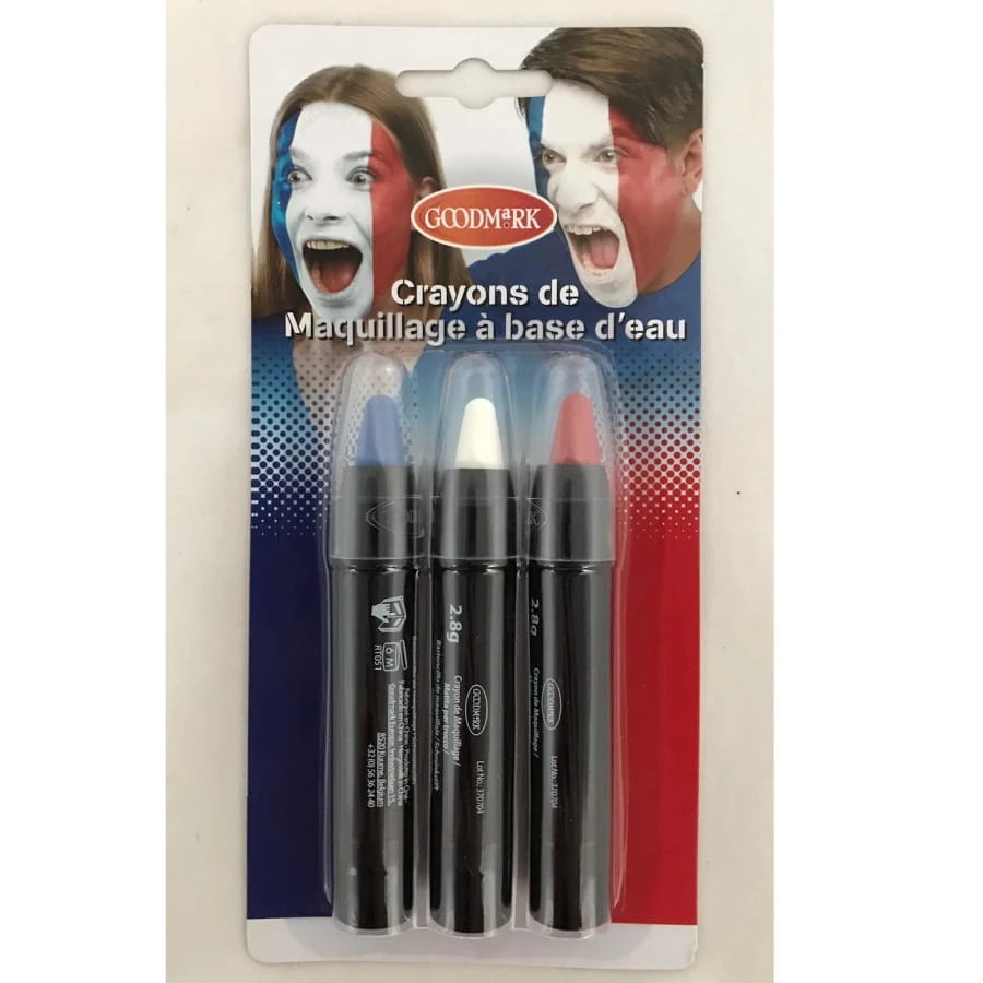 Faites exploser l’ambiance dans un stade de foot ou dans une atmosphère déjantée, avec les 3 crayons bleu blanc rouge de supporter.