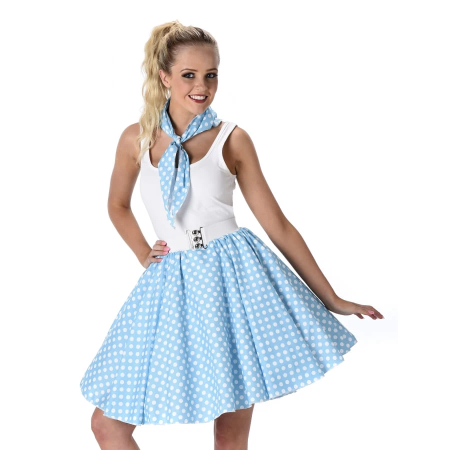 Le bandana et jupe bleue claire à pois 50’s est pour femme.