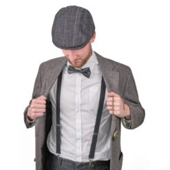 Renouez avec l’élégance et la classe des années rétro, avec le kit bretelles et béret gris des années 20.