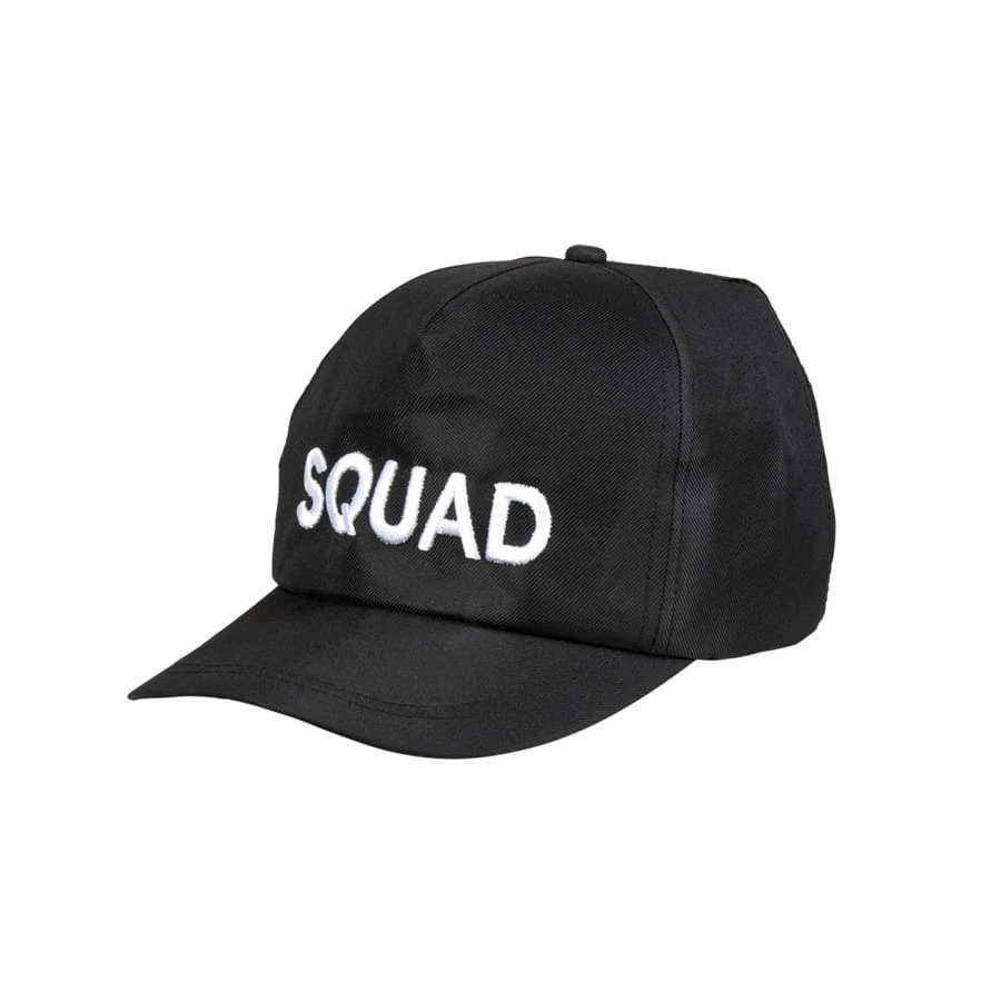 Cette Casquette noire imprimé SQUAD blanc sera parfaite pour compléter un déguisement lors d’une fête de célébration.
