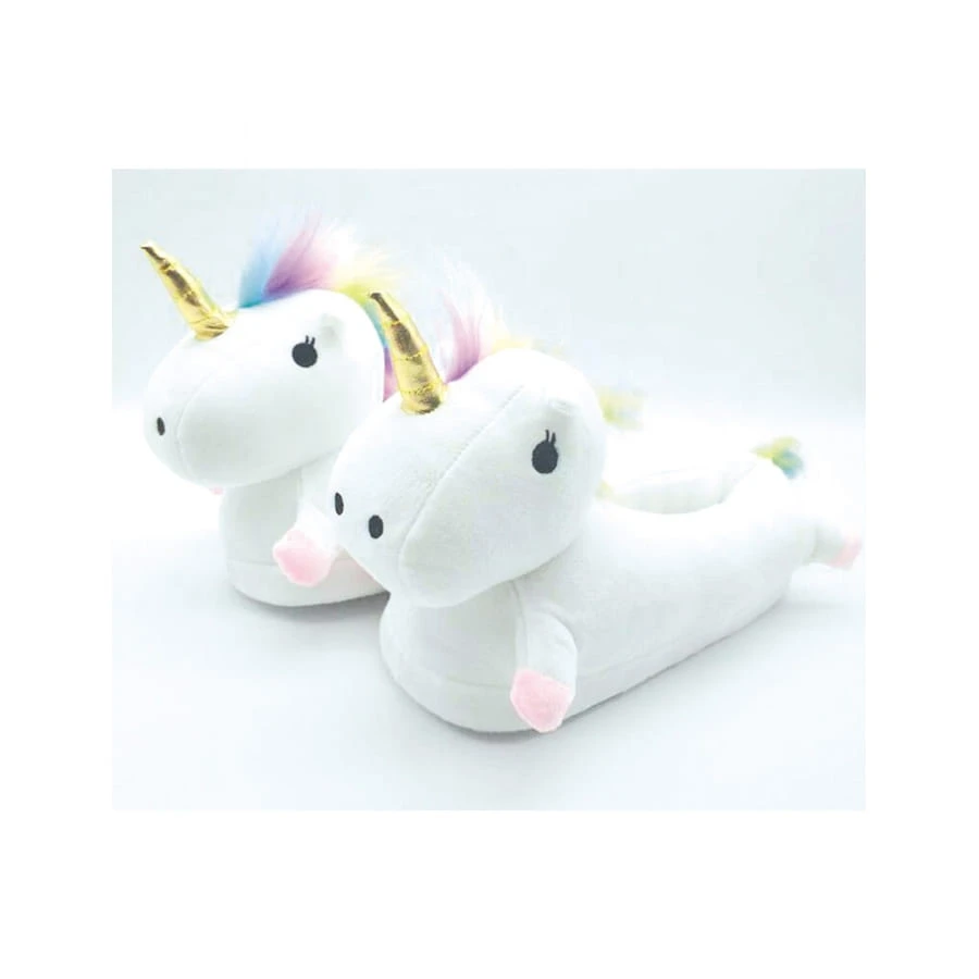 Ces chaussons de couleur blanche ont la forme de mignonnes petites licornes à la corne dorée à effet métallisé.