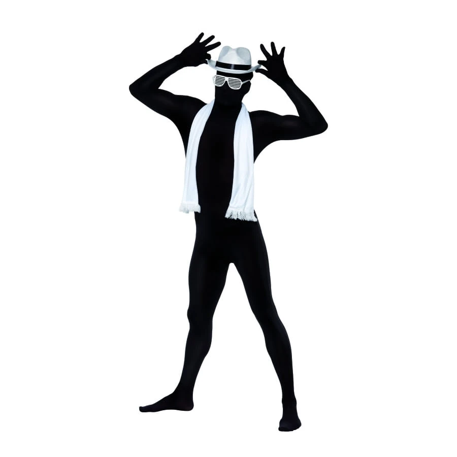 Une combinaison seconde peau de couleur noir. Cet accessoire est disponible en taille M, L ou XL. C’est un accessoire idéal pour un carnaval.