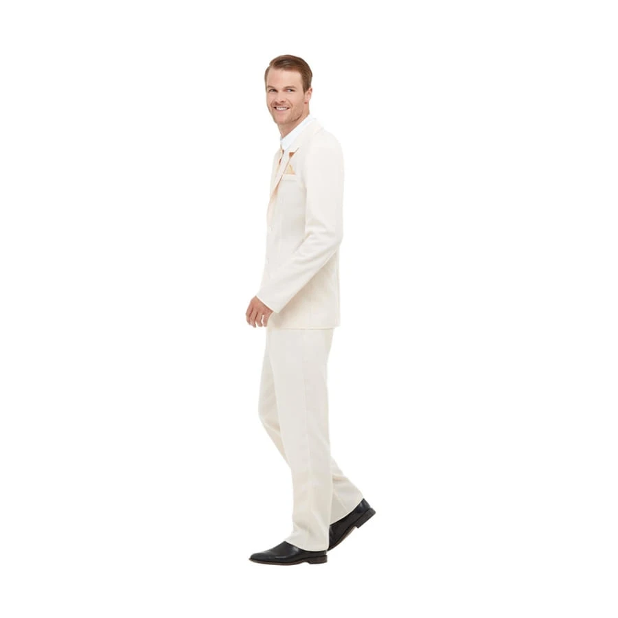 Incarnez un parrain de la mafia le temps d’une soirée années 20 avec le costume 3 pièces blanc pour homme.