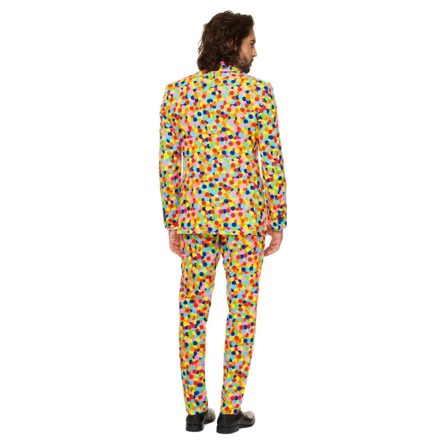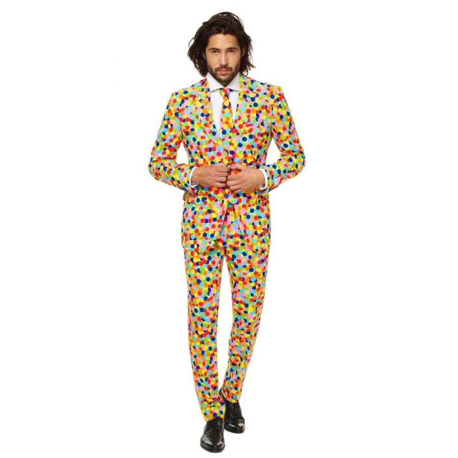 Le costume 3 pièces confettis multicolores est adapté aux hommes.