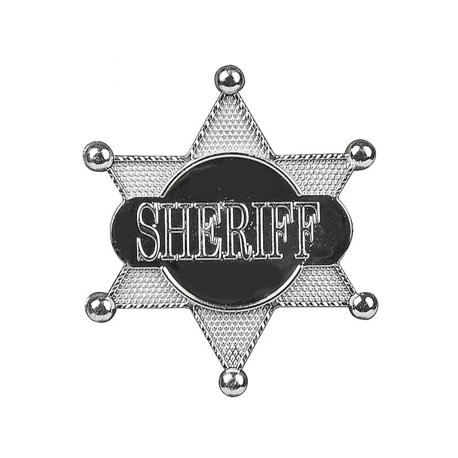 Le chapeau noir est décoré par une étoile de shérif.