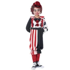 Le costume de petit clown rouge et noir est un ensemble de 5 pièces.
