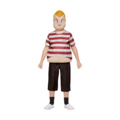 Son mythique haut à rayures rouge et blanc est doté d’un léger rembourrage et d’une petite partie couleur peau qui représente l’embonpoint de ce garçon atypique.