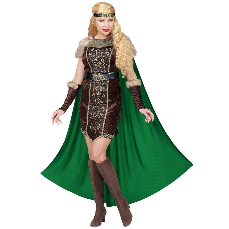 Surprenez vos amis en prenant l’allure d’une combattante médiévale lors d’une soirée sur le thème historique, avec le costume de reine viking avec longue cape.