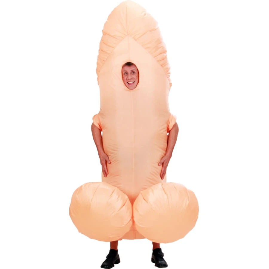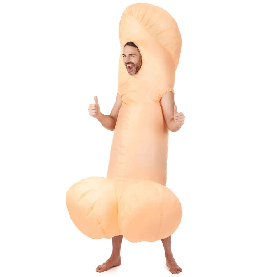 Un costume de zizi gonflable. Cet accessoire est parfait pour un enterrement de vie de garçon ou de jeune fille.