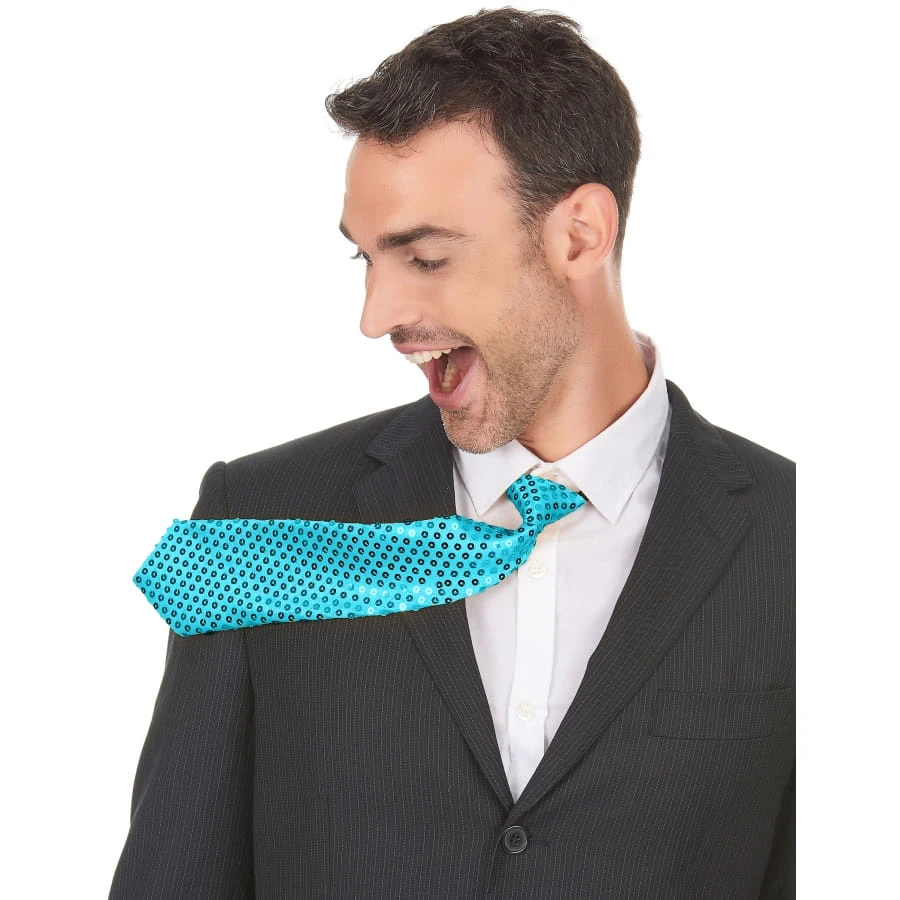 Complétez votre costume flashy à merveille avec cette cravate turquoise recouverte de sequins.