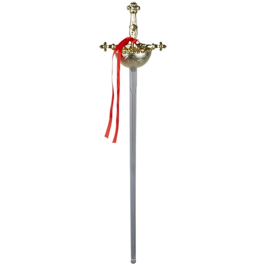 Le haut des manches est bouffant rouge effet satiné ornées de galons dorés identiques à ceux qu’on retrouve au niveau des épaules et des poignées.