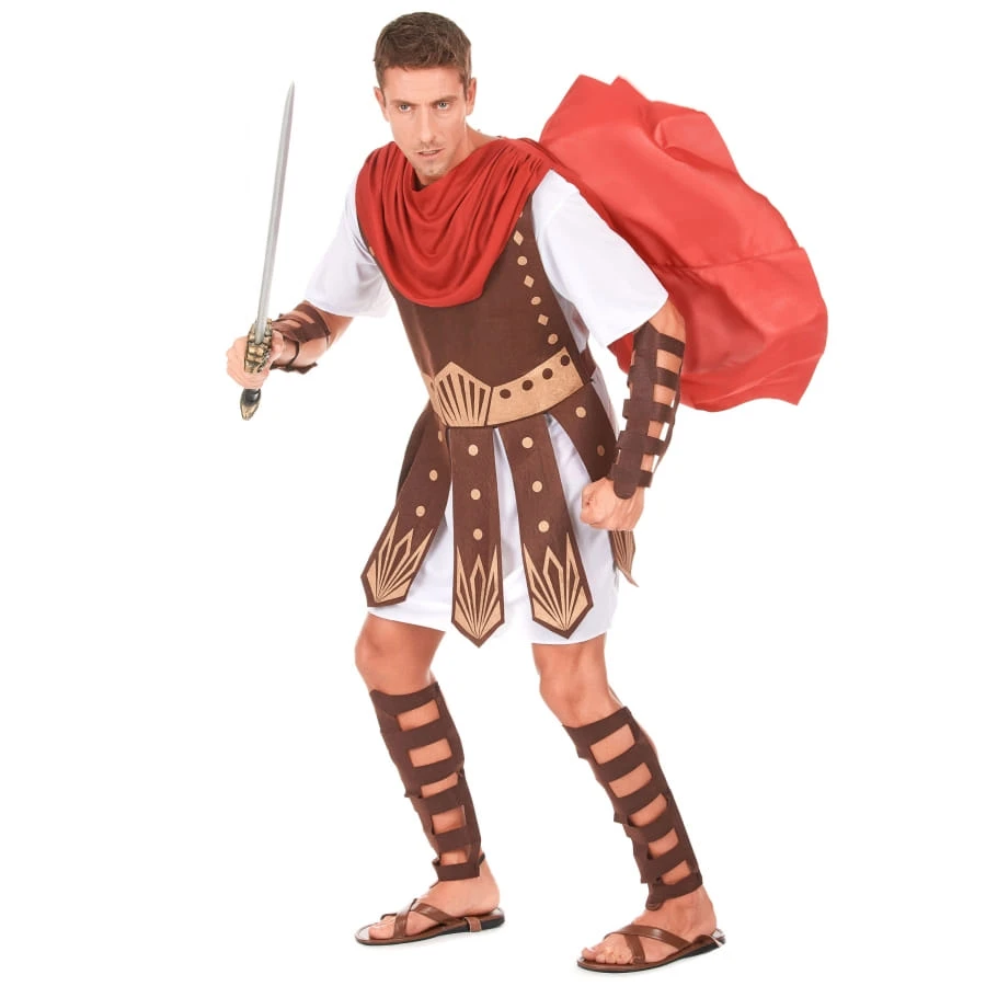 Ce déguisement cuirasse de soldat romain marron rappelle les gladiateurs ou les sous-officiers romains de l’Antiquité.