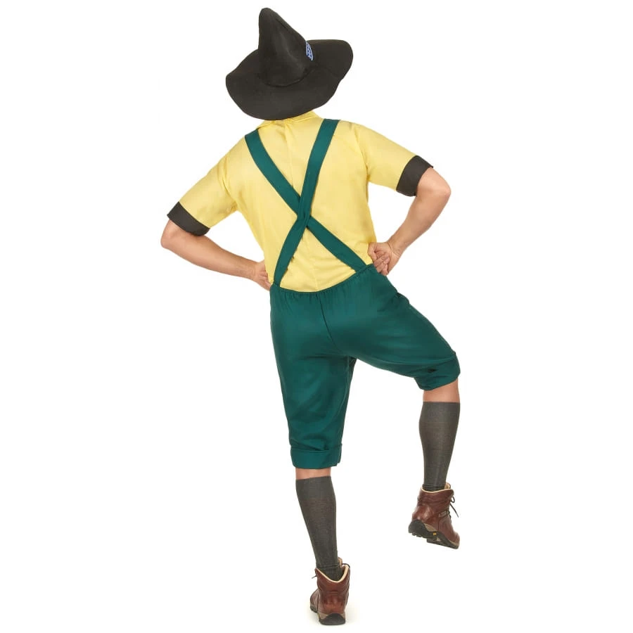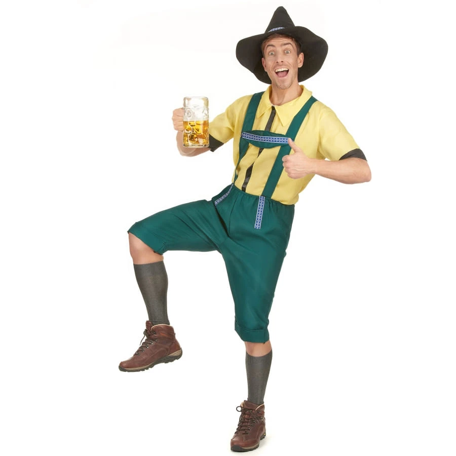 Pour plus de fun dans l’ambiance lors de la Saint-Patrick, enfilez votre costume traditionnel bavarois. Mettez en avant le style folklorique de la Bavière en sélectionnant ce déguisement de bavarois en salopette verte. Vous aurez droit à un t-shirt de couleur jaune, agrémenté de quelques touches de noir à l’extrémité des manches. Retrouvez un scratch de fermeture au niveau du col. Vous disposerez aussi d’un pantacourt vert à bretelles, un peu comme une salopette. Celles-ci sont ornées de quelques broderies sur les extrémités et elles sont dotées de scratchs pour la fixation. Pour terminer, un chapeau de couleur noire en feutrine complète la série. Le modèle est légèrement pointu et agrémenté des mêmes broderies que vous distinguerez sur les bretelles.