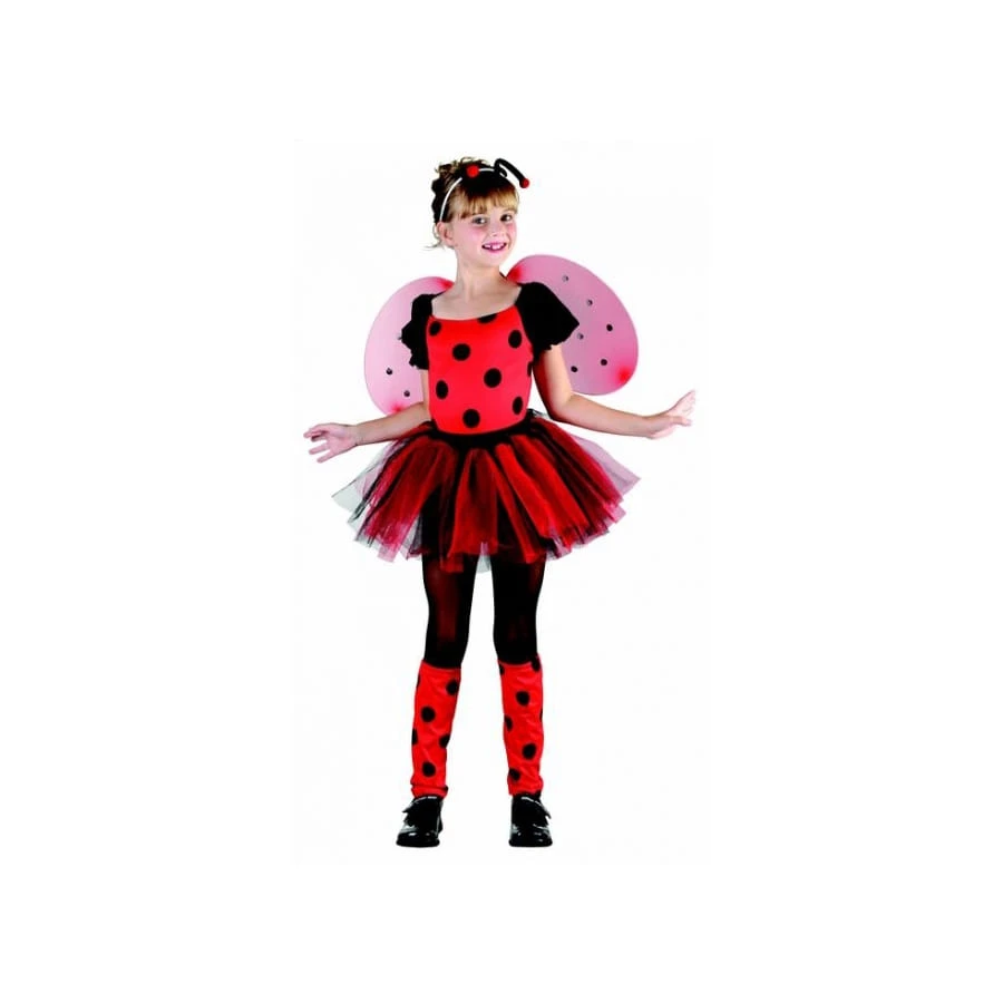 Pour une fête d’anniversaire déguisée, offrez à votre fille ce déguisement de coccinelle en tutu pour fillette, qui la rendra très jolie et convoitée de toutes ses copines. Le déguisement comporte un body qui s’enfile à partir du bas, qui est constitué d’un justaucorps sans attaches. Le haut est rouge à pois noir avec des manches courtes noires, en ballon, serrées à l’élastique. Une jupe en tutu faites de succession de tulles rouge et noire se met à la taille avec un élastique noir, et une paire de guêtres rouges à pois noirs vient couvrir les jambes. Une paire d’ailes rouge à pois noirs, à armature métallique se porte comme un sac à dos grâce à 2 élastiques, et enfin un serre-tête en plastique sur lequel sont fixées 2 antennes noires vient donner la touche finale.