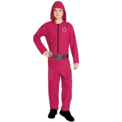 De fausses poches cargo animent les jambes, tandis qu’une fermeture noire contraste permet d’enfiler aisément l’uniforme de gardien.