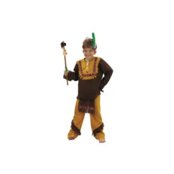 Dans la peau d’un petit indien, votre boutchou va attirer tous les regards au carnaval. Très original, ce déguisement de guerrier indien marron pour garçon se fera facilement remarquer. Il s’agit d’un ensemble de couleur marron et jaune, avec un haut et un pantalon assortis, tous deux conçus dans un tissu très doux. Le haut est doté de longues manches et est orné de franges. Le pantalon quant à lui est élastique, avec une sorte de tablier marron à franges cousu à l’avant. Le mignon petit bandeau devra être porté autour de la tête. Il est multicolore avec des imprimés motifs indiens. Il s’agit d’un bandeau élastique à aspect brillant. A noter que cet article a été fabriqué en plusieurs tailles, adaptées aux enfants âgés de 4 à 12 ans.