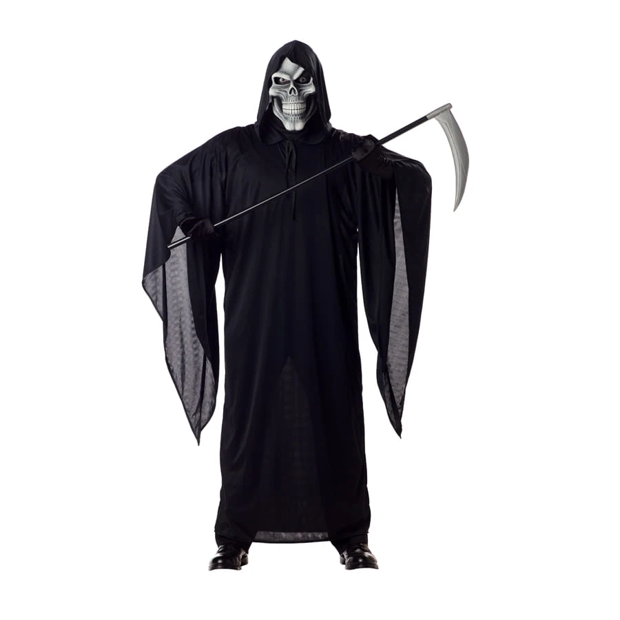 Incarnez un véritable monstre pour fêter Halloween comme il se doit ! Ce déguisement que nous vous proposons ici vous permettra facilement de semer la terreur. Il comprend une longue robe toute noire avec un capuchon et une paire de manchons largement évasés. Un masque redoutable représentant une tête de mort vivant vient accessoiriser l’ensemble, pour vous faciliter la tâche. Ce costume a été spécialement conçu pour hommes, de tailles : L/ M/ XL. Une fausse faux de la mort est indispensable pour interpréter un vrai faucheur, nous en avons plusieurs dans notre stock d’accessoires en tous genres. Dans ce cas, qu’attendez-vous pour casser la baraque ?