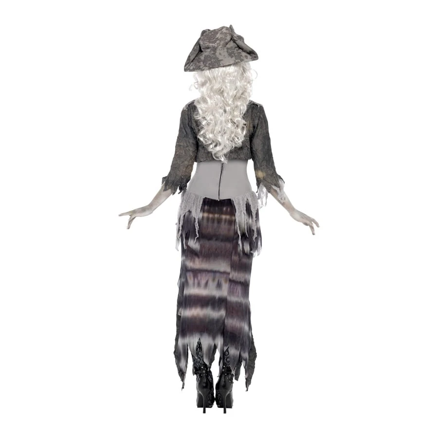 Déguisement de pirate zombie, pour femme, composé d’un haut, d’une jupe, d’une veste et d’un chapeau, tous de couleur grise. Si vous avez adoré la partie zombie des « Pirates des Caraïbes », ce déguisement est fait pour vous. Il vous permettra d’imiter les zombies pirates du film. L’ensemble est disponible en taille S, M, L ou X1.