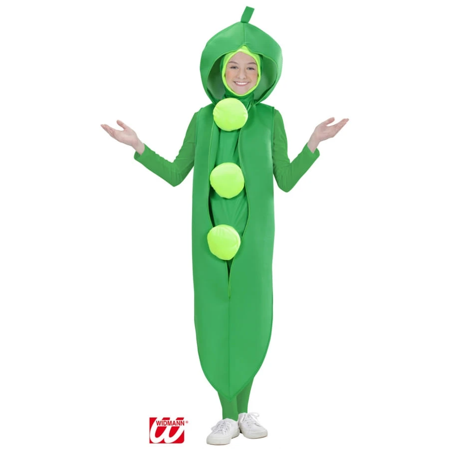 Beaucoup d’enfants n’aiment pas du tout les légumes, et plus particulièrement les légumes verts, par exemple les petits pois. Alors pourquoi ne pas leur faire comprendre qu’on peut s’amuser avec, notamment lors d’un carnaval ou d’une fête à l’école ? Choisissez-leur ce déguisement de petit pois, spécialement adapté aux enfants, constitué d’une tunique en tissu 100% polyester en forme de gousse de petit pois, toute en vert avec un trou pour faire sortir la tête, et de gros boutons en guise de petits pois sur le devant. Les tailles disponibles sont : 128, 140 et 158. Le port d’un justaucorps est conseillé mais celui sur la photo n’est pas compris dans ce kit de déguisement. Élément de persuasion de taille pour ces jeunes demoiselles : les petits pois, ça garde la ligne !