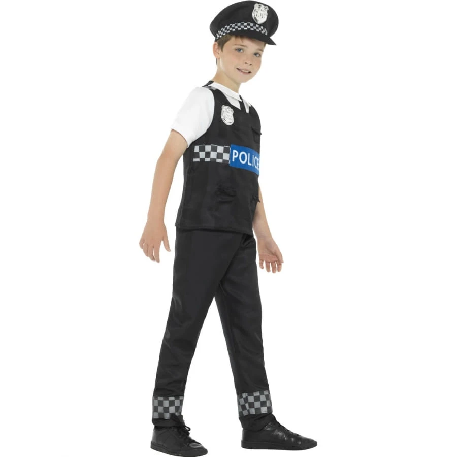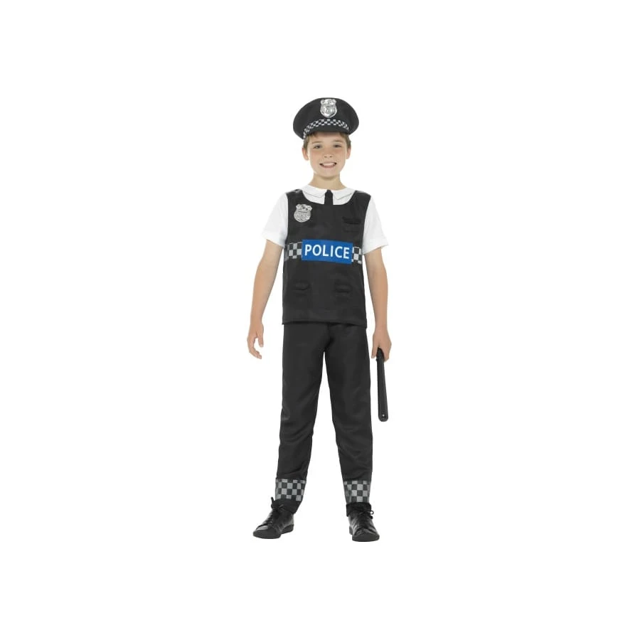 C’en est fini des criminels ! Faire régner la justice est un boulot que votre enfant prendra bien à coeur avec ce déguisement de policier Américain pour enfant. Il s’agit d’un ensemble pour petit garçon avec différentes tailles appropriées à une tranche d’âge de 4 à 14 ans. Il est constitué par un haut de couleur noire avec insigne de police intégré. L’inscription « police » a été imprimé sur le devant. Le pantalon est aussi de couleur noire. Un superbe chapeau avec insigne complète le costume. Des matraques, des pistolets, des menottes et plein d’autres armes en tout genre vous sont proposés à travers les divers articles jouets du site Happyfete. Votre bout’chou pourra ainsi s’amuser à arrêter ses amis coupables !