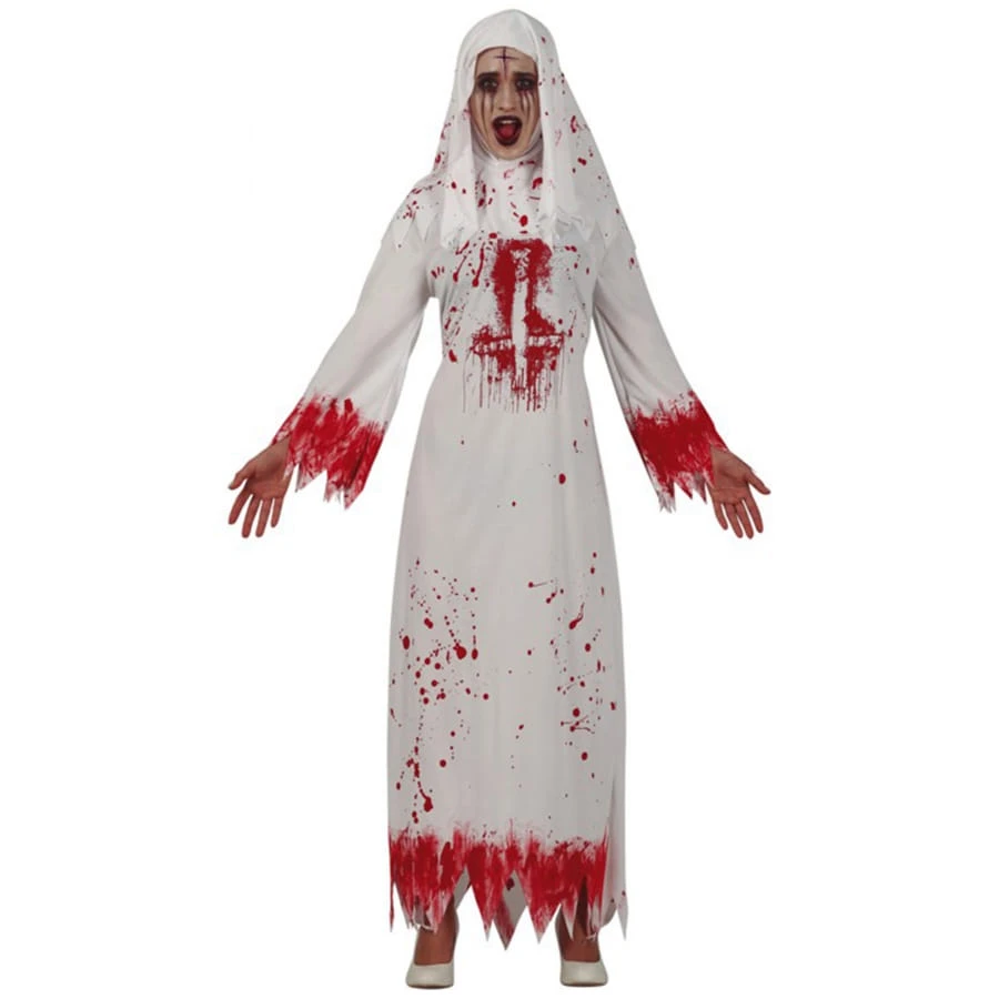 Une diablesse déguisée en none pour Halloween, c’est ce que vous propose le déguisement de religieuse ensanglantée.