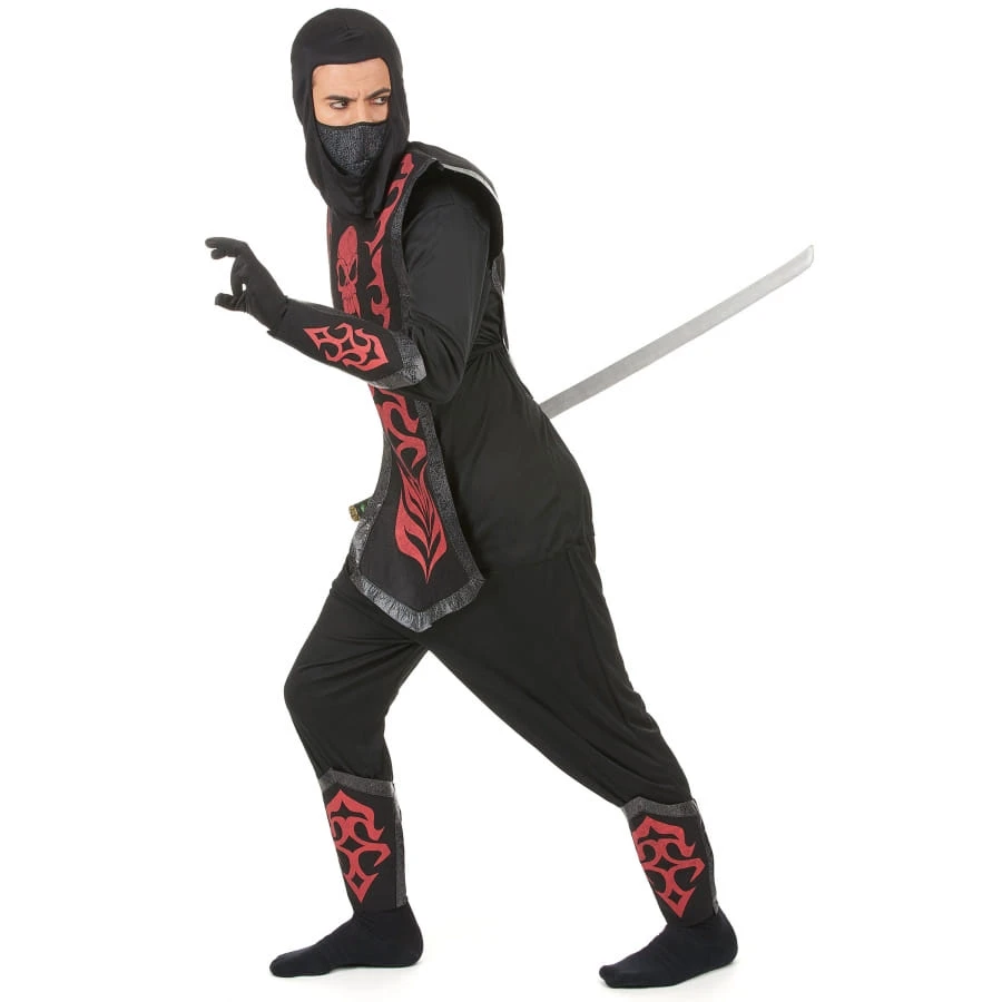 Arborez ce déguisement noir de ninja avec motifs rouges lors de la prochaine soirée costumée à laquelle vous assisterez.