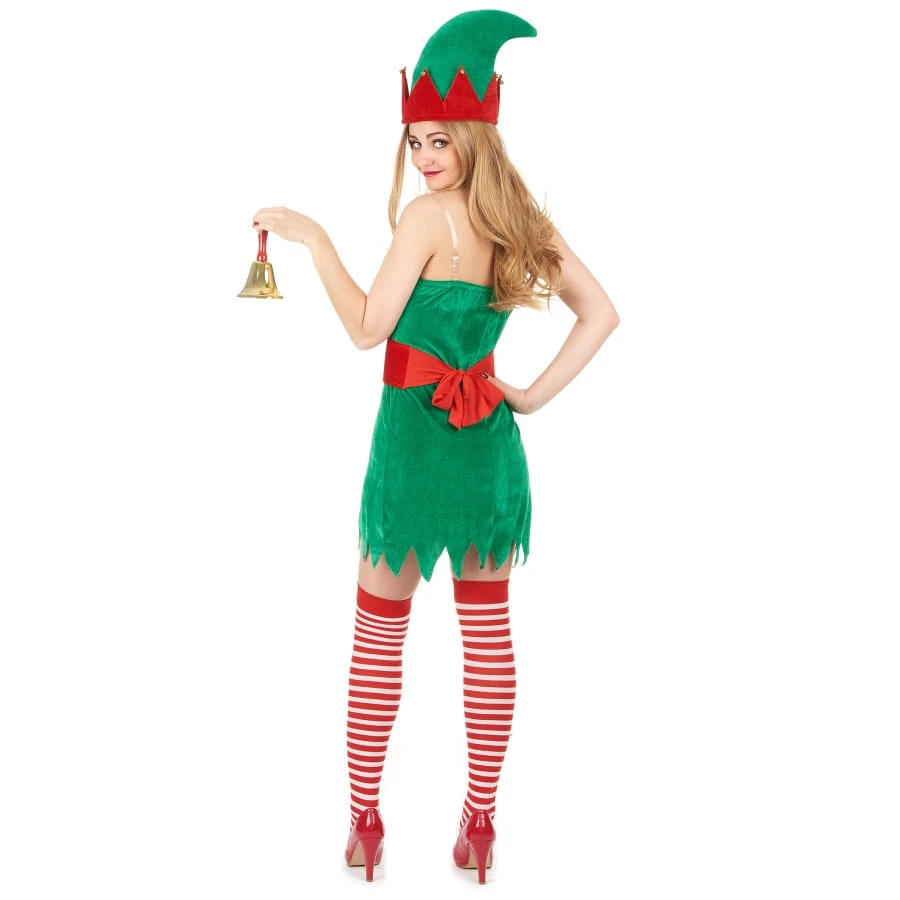 Pour le réveillon de Noël en famille ou entre amis, plongez dans le décor avec ce déguisement robe courte de lutin de Noël. Ce costume se compose d’une tunique à bretelles à effet velours de couleur rouge et vert, des découpes en zigzag sont visibles au niveau de la poitrine et du bas de la robe, ce qui lui donne une apparence asymétrique. Pour ajouter du style à cette robe, elle s’accompagne d’une grosse ceinture rouge à boucle dorée sur le devant et un noeud à l’arrière. Pour compléter votre costume, un chapeau pointu et recourbé dans les mêmes tons que la robe est aussi inclus. Petits et grand vont apprécier ce déguisement. Vous pouvez également ajouter une paire de collants, tout comme sur notre modèle.