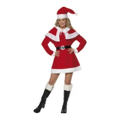Pour la noël vous serez la plus belle dans ce costume de mère noël. Vous pourrez a la fois être belle et sexy dans ce costume de mère noël. Il est composé d’une robe rouge manche longue, d’un chapeau, d’une cape avec lacet devant et d’une ceinture noire avec une boucle dorée.