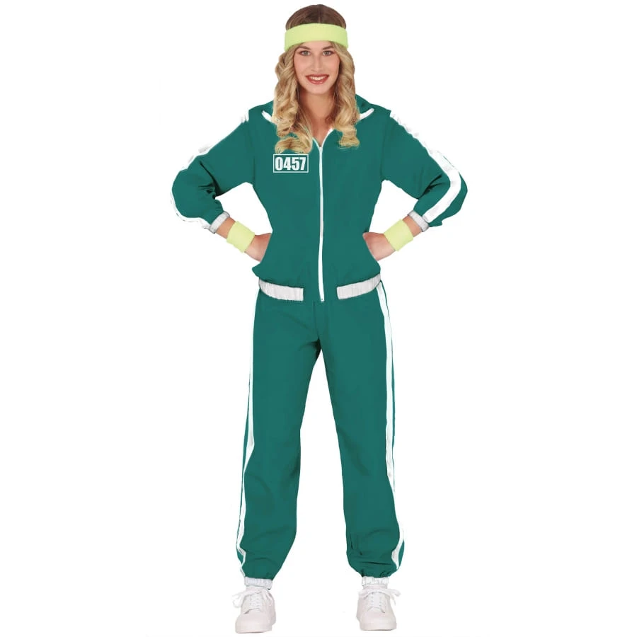 Survivez aux plus grands défis du jeu lors de la nuit d’Halloween, avec le déguisement vert de participant de jeu pour femme.