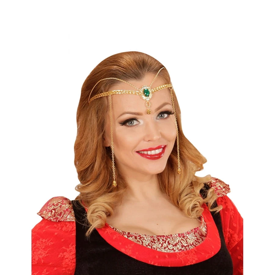 Agrémentez votre costume de reine médiévale avec ce diadème doré d’elfe avec pierre verte.