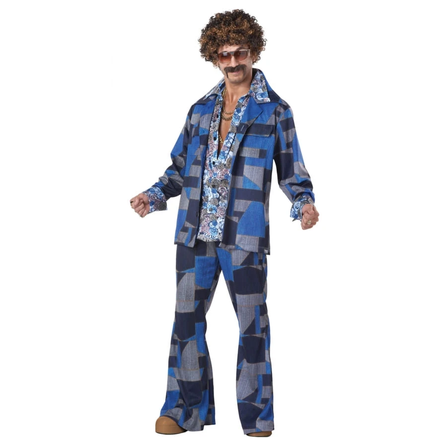 Marquez le coup lors d’une soirée rétro, en revêtant cet ensemble disco camaïeu de bleu motifs fleuris.