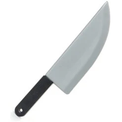 Faux grand couteau de cuisine en plastique s’avère idéal pour compléter votre tenue d’Halloween. Il évoque le meurtre et la tuerie, alors qu’il n’est pas dangereux étant donné qu’il se compose de plastique. Un couteau assez large et assez long en taille. Il mesure très exactement 45 cm. Sa couleur grise à manche noire couverte de détails correspond idéalement à une tenue de tueur, de boucher ou encore de cuisinier pour la fête des morts.