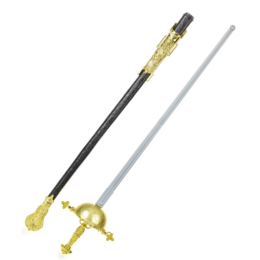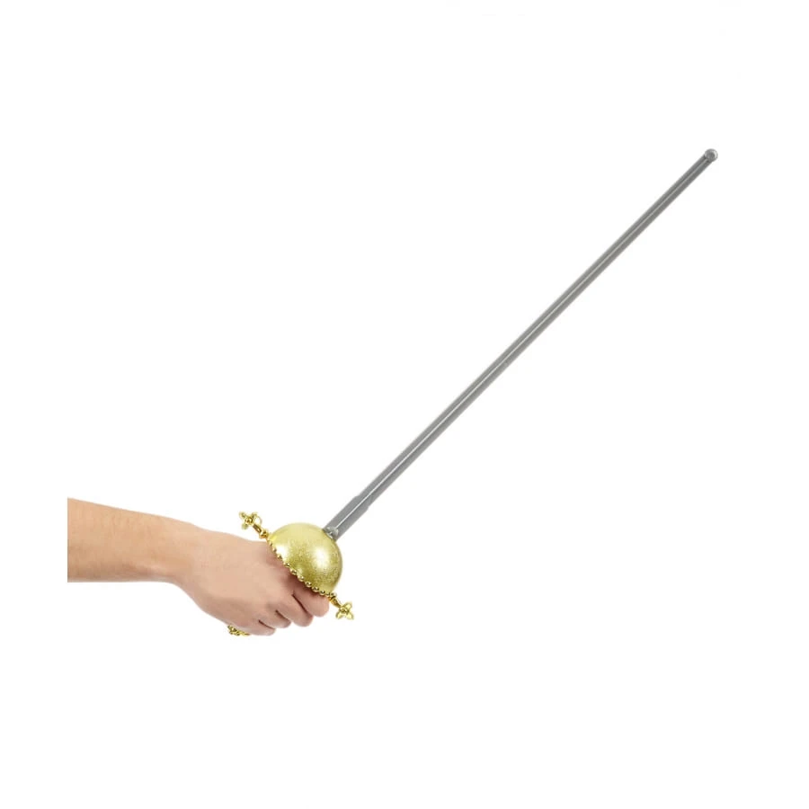 Zorro est très habile pour désarmer ses adversaires et les amener ensuite à la défaite. Vous aussi, équipez-vous de ce fleuret avec manche doré, en plastique, et partez à l’aventure ! Cette arme de justicier est en plastique de couleur argentée et fait 73 cm de long environ. Le manche doré est de forme arrondie. Un étui de couleur noire est fourni pour le rangement. A noter que cet accessoire inédit est sous licence Zorro.