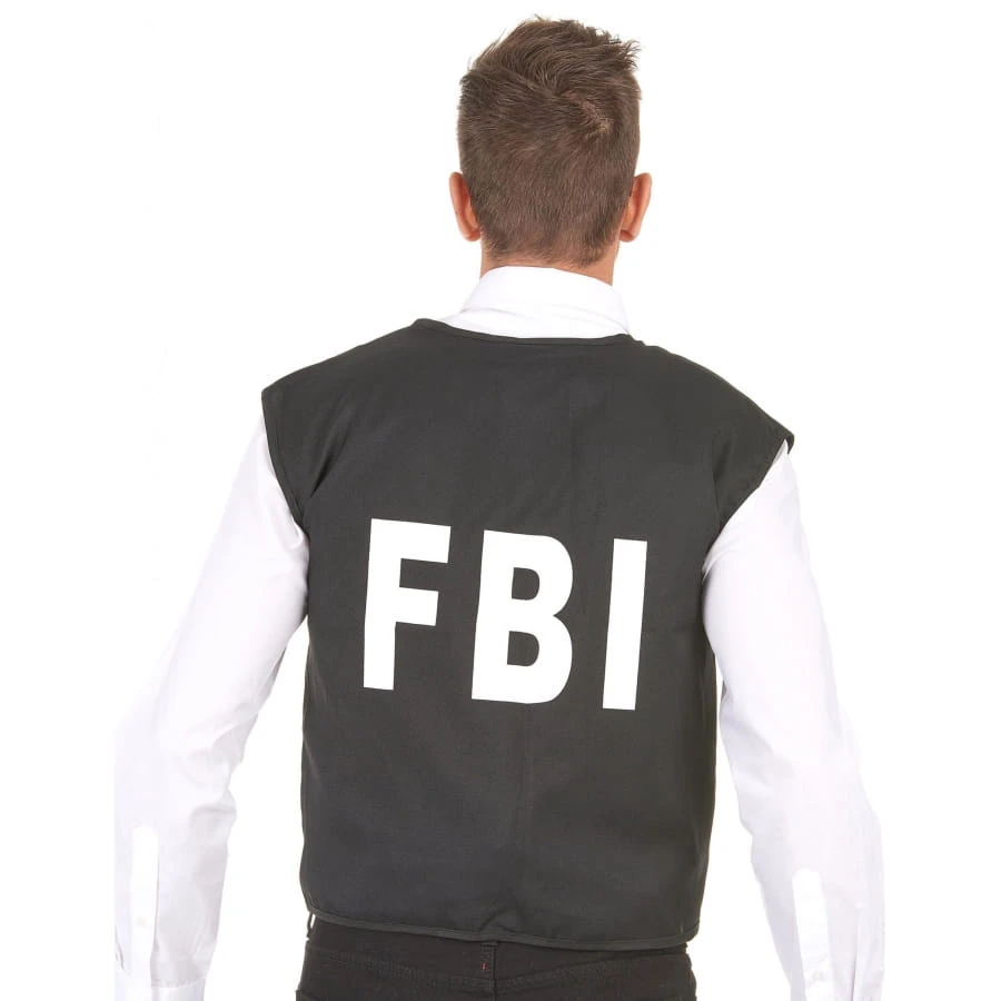 C’est un gilet de couleur noire avec le terme FBI floqué sur la poitrine et le dos.