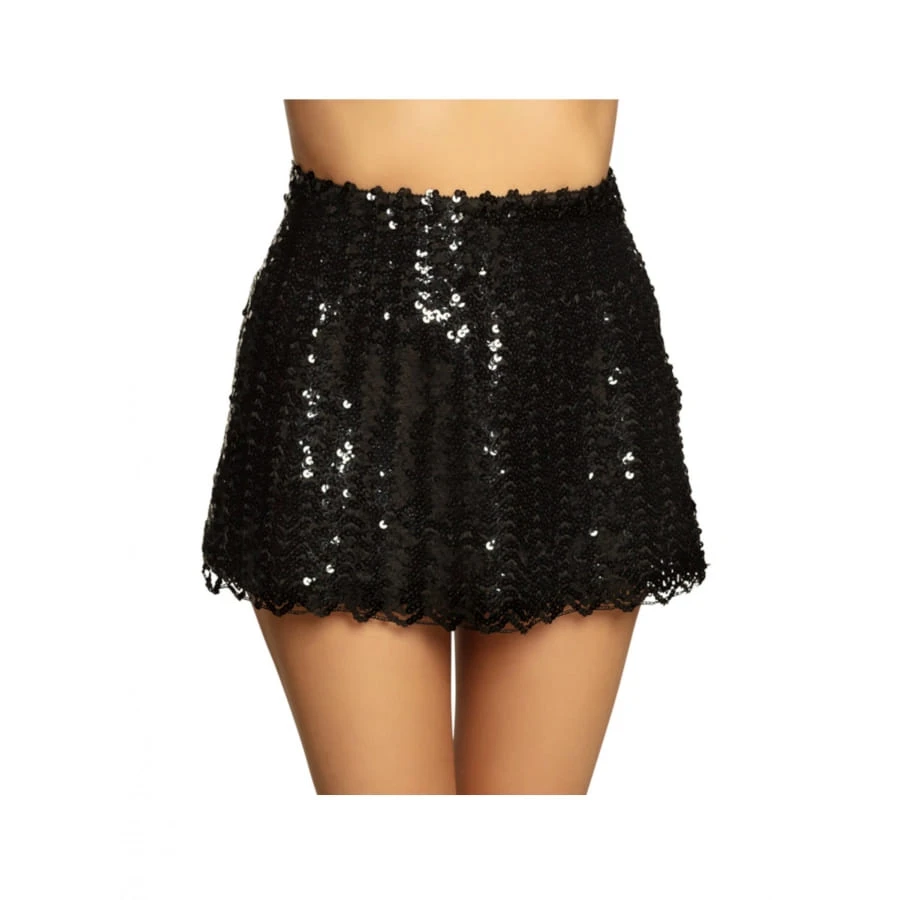 La jupe disco noire à sequins est destinée aux femmes.