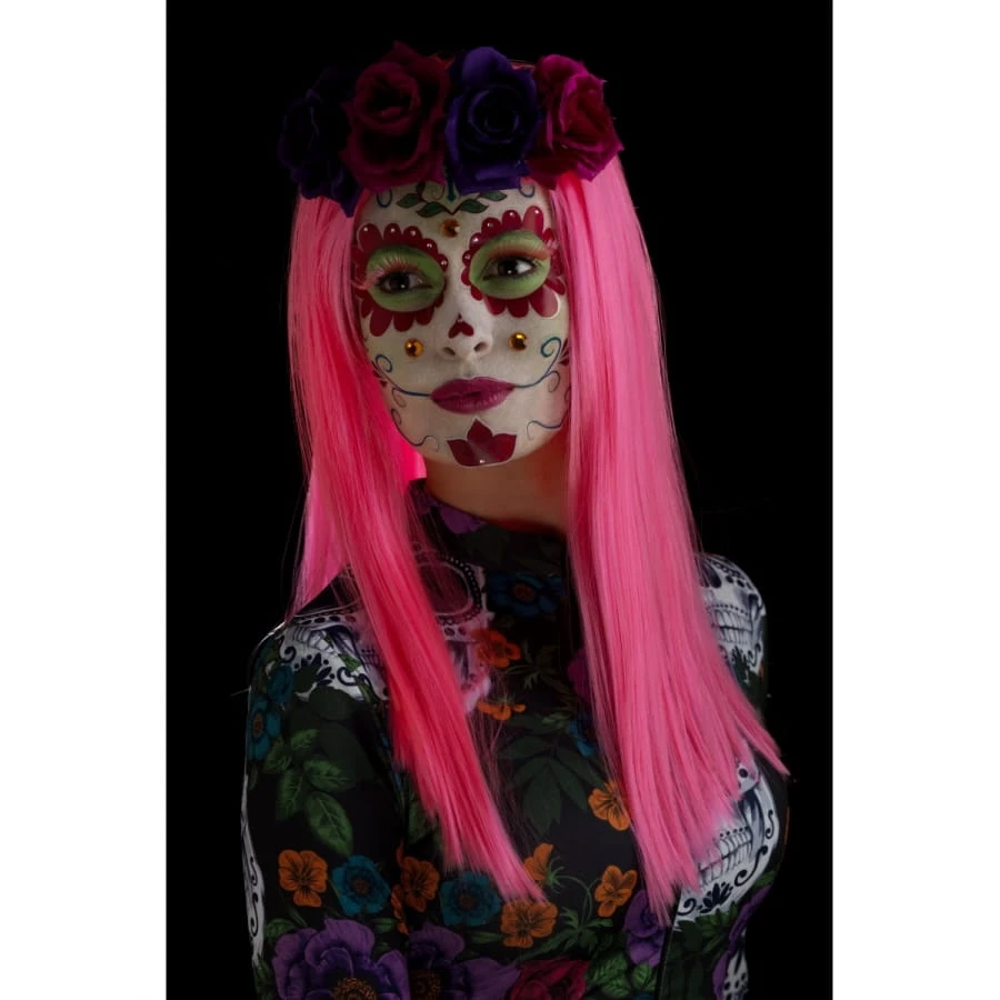 Savez-vous ce que produit la culture mexicaine mélangée à un style ultra girly ? Munissez-vous du kit de maquillage jour des morts girly pour obtenir un résultat des plus époustouflants. Cet article cosmétique est composé de plusieurs éléments multicolores et phosphorescents. Vous disposerez de transferts à motifs inspirés de la culture mexicaine, de peinture pour visage, de bijoux de maquillage, d’un crayon, de faux cils et aussi d’un applicateur.