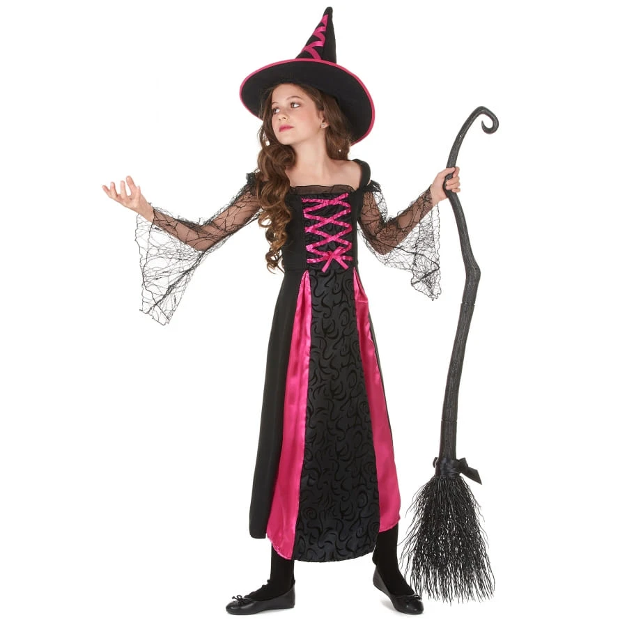 Prévoyez un déguisement parfait pour votre petite fille à l’occasion de la fête des morts. Pour ce faire, nous vous proposons le long costume de petite sorcière noir et rose, qui reste disponible sur notre site. Il s’agit d’une robe longue de couleur rose et noire à bretelle. Elle présente également des manches longues évasées en fine dentelle. Un faux corsage à lacet rose vient décorer la robe au niveau du buste. Cette robe conçue dans un tissu satiné et à la fois léger offre un meilleur confort. Un chapeau noir s’ajoute à l’ensemble pour faire de votre petite fille une vraie sorcière digne d’halloween ! Il est également orné d’un faux laçage rose.
