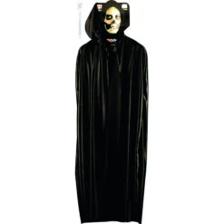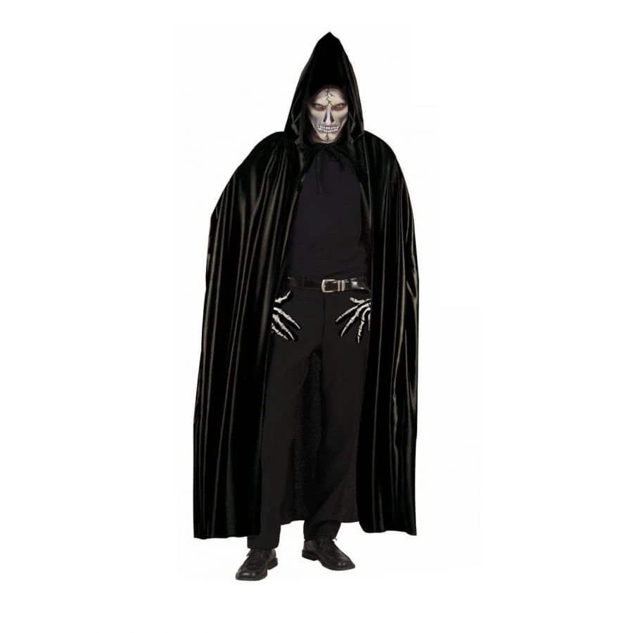 Une longue cape noire. Cet accessoire mesure 142 centimètres de longueur. C’est un accessoire parfait pour compléter un déguisement de magicien, de monstre, de vampire ou de démon.