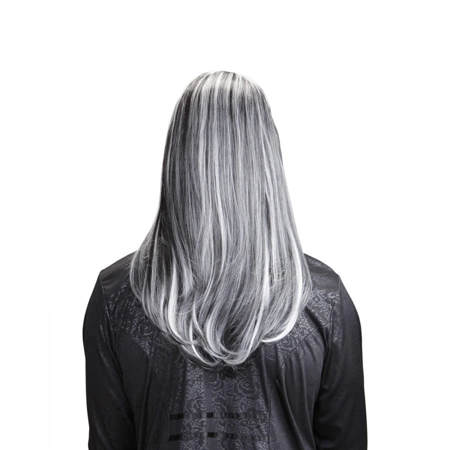 La longue perruque blanche et noire de vampire est le complément idéal pour un costume de vampire lors d’une fête sur le thème de l’horreur.