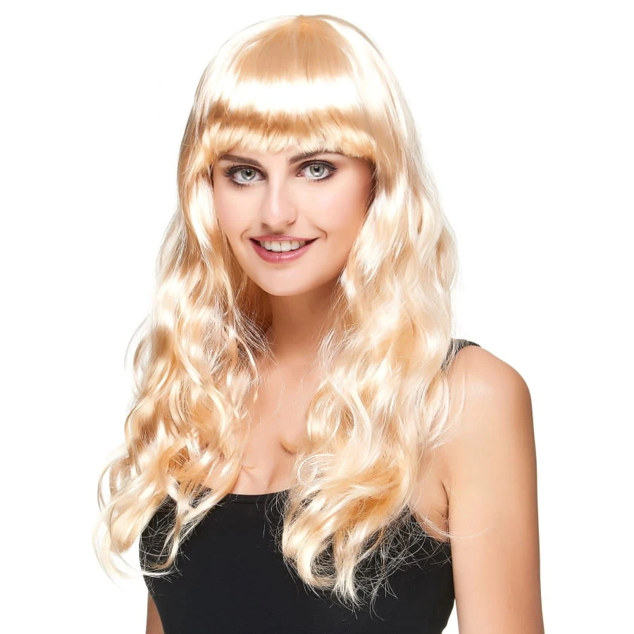 Longue Perruque Blonde Légèrement Ondulée, Frange