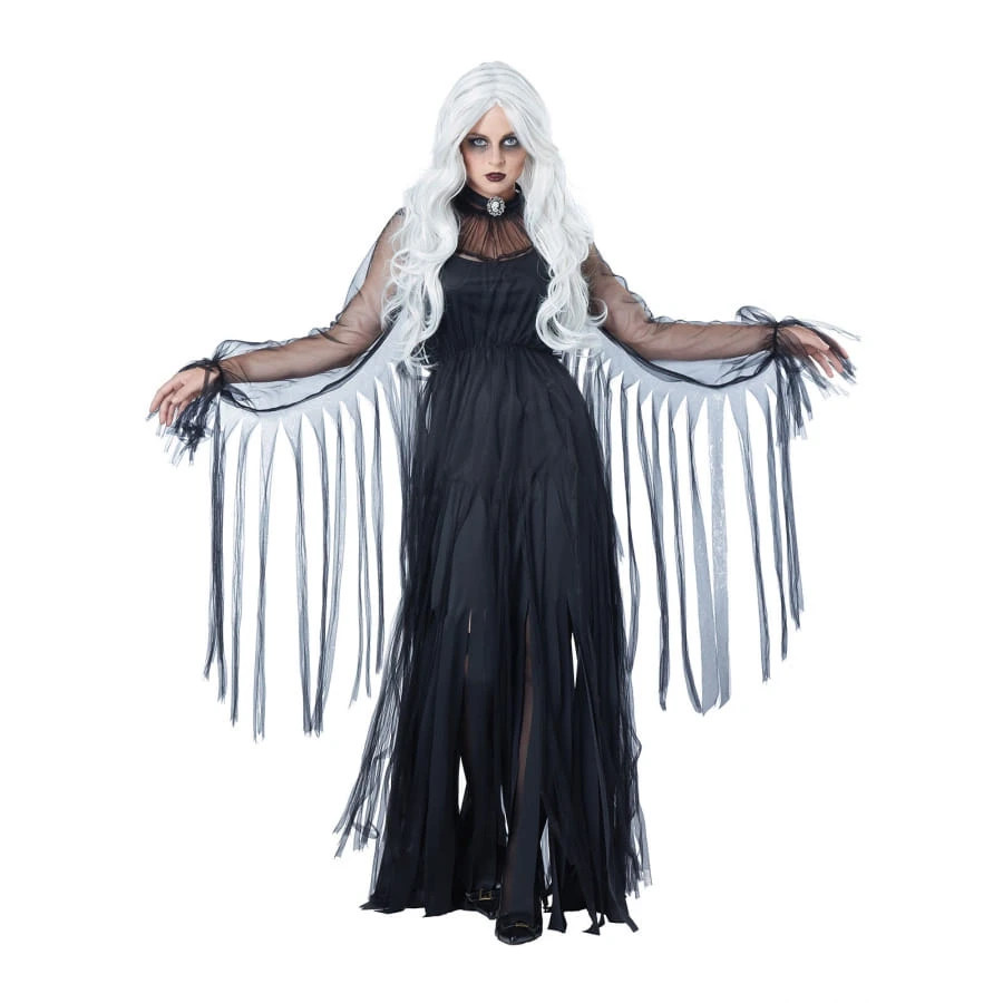 La longue robe noire de fantôme en lambeaux est destinée aux femmes.