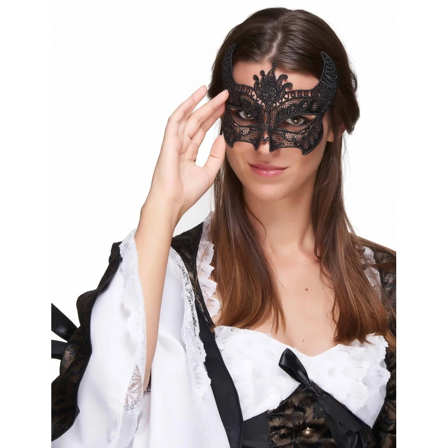 Le loup diable noir en dentelle est un masque pour femme.