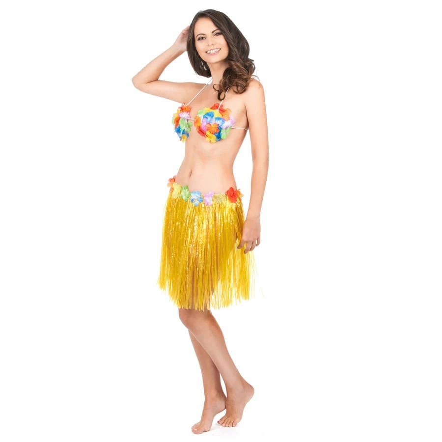 Pour que vous puissiez mettre en valeur votre tenue hawaïenne, nous mettons à votre disposition ce pagne hawaïen court ceinture fleurie.
