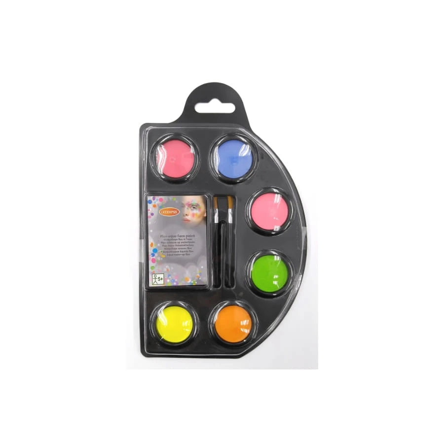 Pour vos soirées déguisées, cette palette aqua color de 6 couleurs fluo : bleu, jaune, rose, vert, violet et orange vous mettra en valeur. Facile à appliquer, elle est livrée avec deux pinceaux et une éponge spéciale fard à l’eau, qui vous aideront à vous maquiller. Un petit passage sous l’eau et vous vous débarrasserez des restes de votre maquillage. Profitez de votre soirée et soyez sûre de faire sensation !