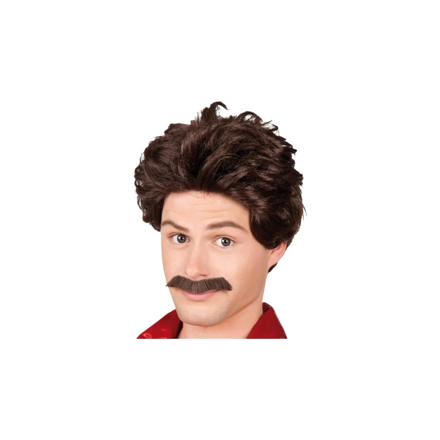 Perruque Brune De Presentateur 70′ Avec Moustaches