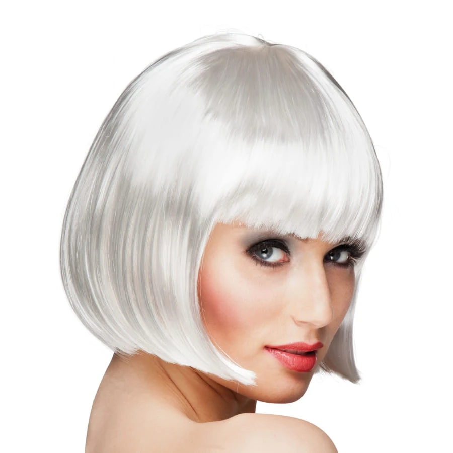 Perruque Carré Court Blanc Avec Frange Droite