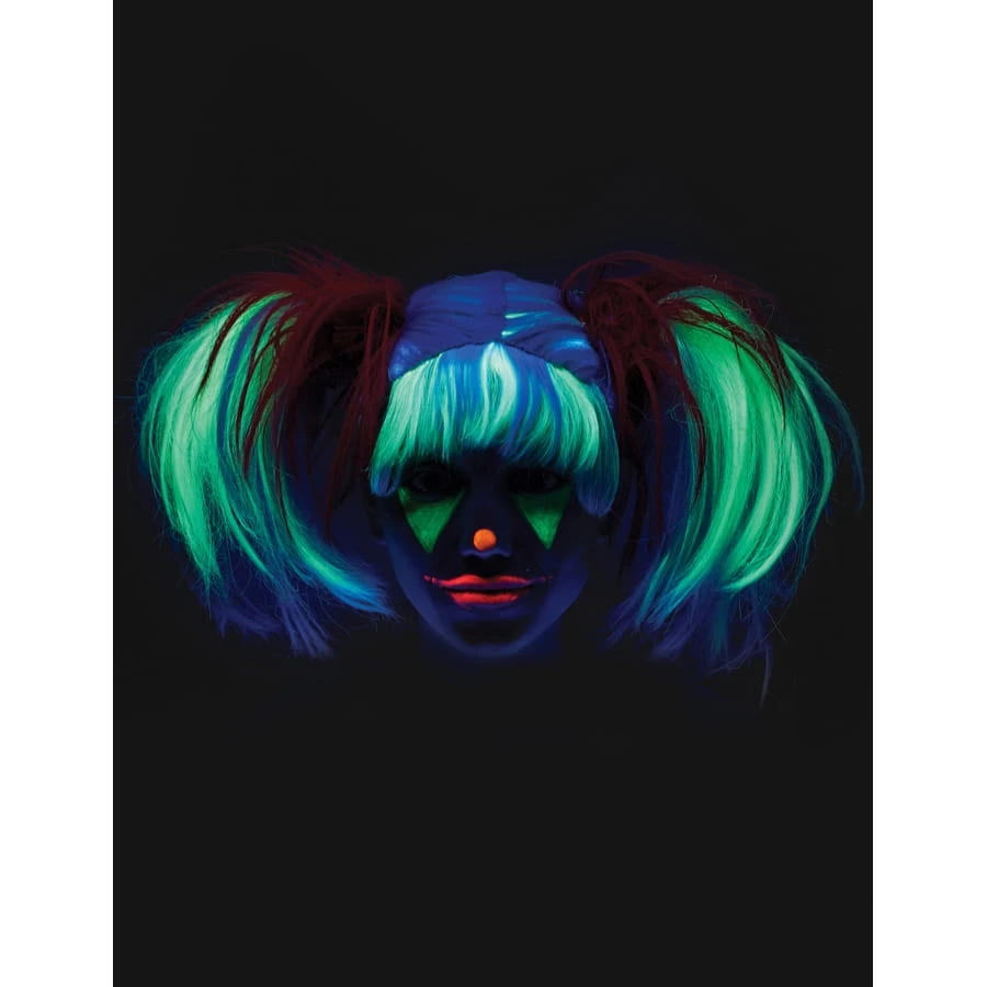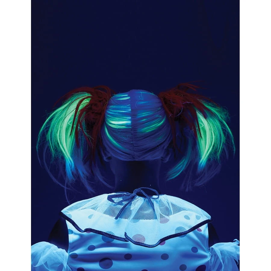 Avec cette Perruque couettes, phosphorescente pour enfant, votre petite fille est fin prête pour incarner un vilain de film de super héros.