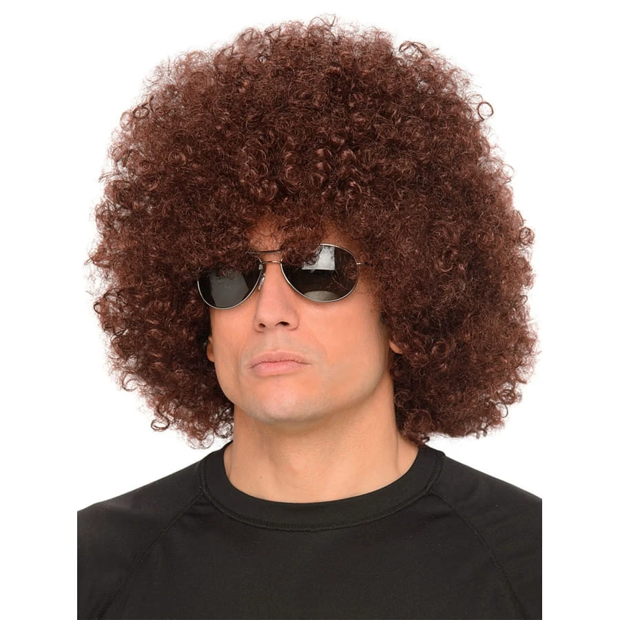Cette perruque afro pour adulte possède des cheveux marrons frisés et volumineux qui formeront une sorte de grosse boule au-dessus de votre tête.