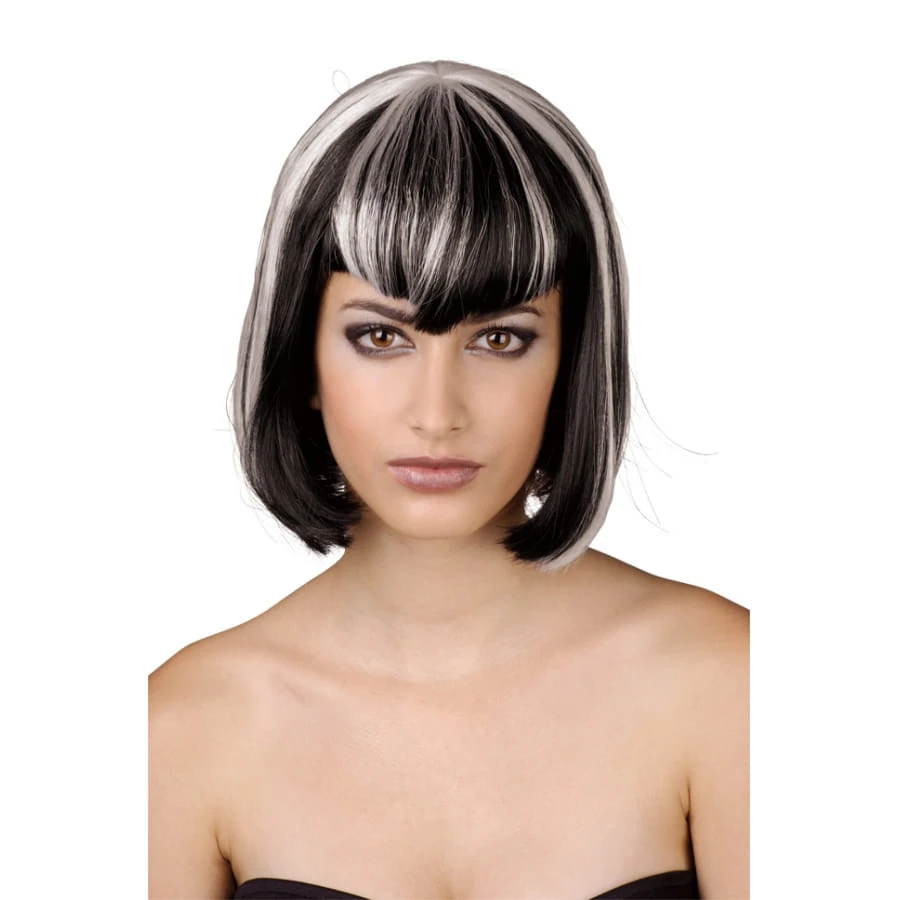 Si vous recherchez un accessoire pour accompagner votre costume pour la fête des morts, nous avons l’article qui répond à vos attentes. Il s’agit de la perruque noire avec mèches blanches à frange qui reste disponible sur notre site. Idéale pour incarner un autre personnage, votre déguisement s’en verra originale. De couleur noire, cette chevelure coupée au carré présente des mèches blanches et elle est pourvue de frange.