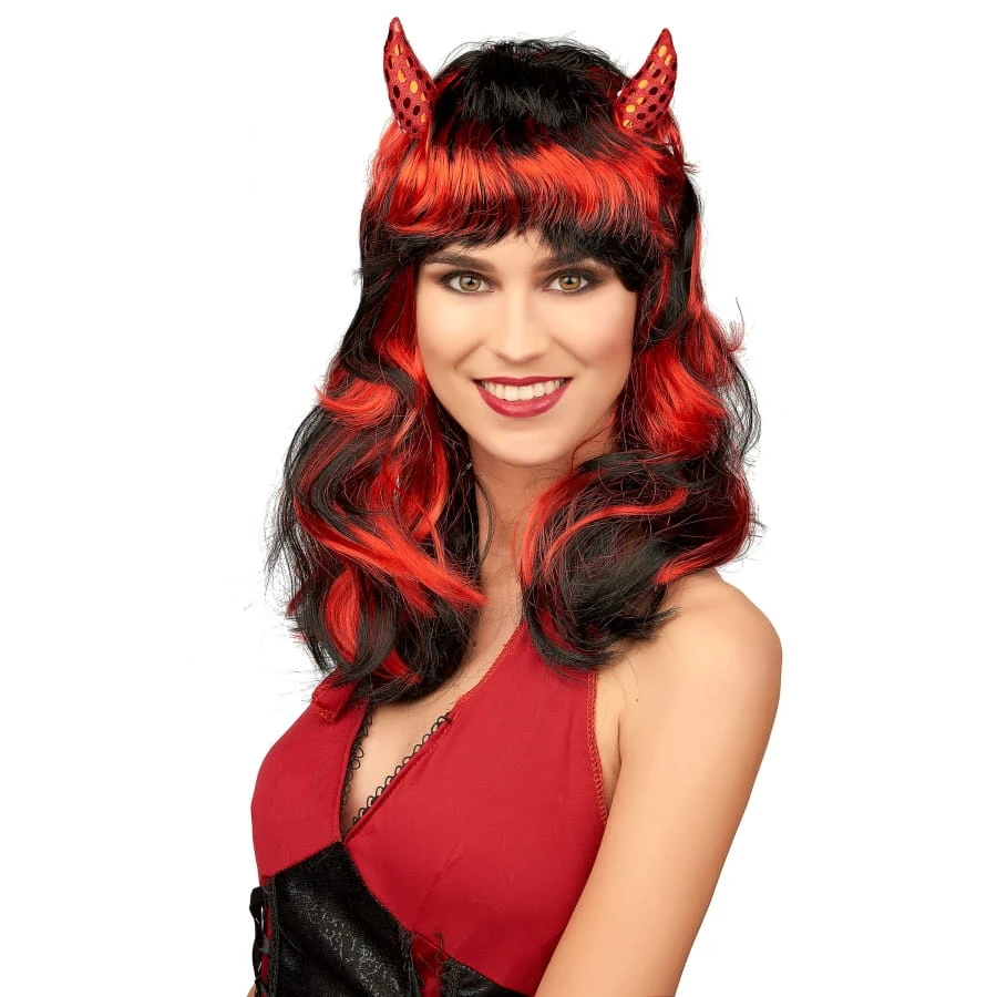 Cette perruque sera le complément idéal pour votre déguisement de diablesse à l’occasion d’halloween.